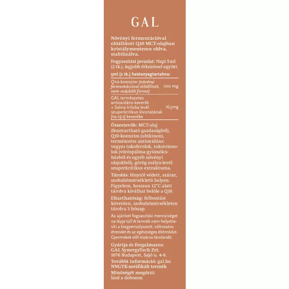 Fenntartható gazdaságból származó pálmamagból nyert MCT-olajban oldottuk, hogy elégtelen epetermelés esetén se legyen akadályozott a felszívódás. A stabilitás biztosítására, és egyben a Q10 megfelelő szervezeten belüli redukálásának támogatásához egyedi antioxidáns rendszerünket is hozzáadtuk, amely többek közt a görög zsálya levelének ún. szuperkritikus extrakciójából, vöröspálma gyümölcséből és növényi olajokból nyert tokoferolokból és tokotrienolokból áll.