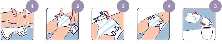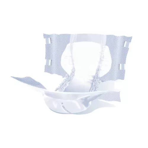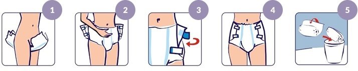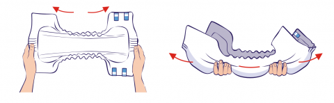 Ragasztós tépőzárral: ami lehetővé teszi a pelenka többszöri nyitását és visszazárását a pelenka külső rétegének felszakítása nélkül