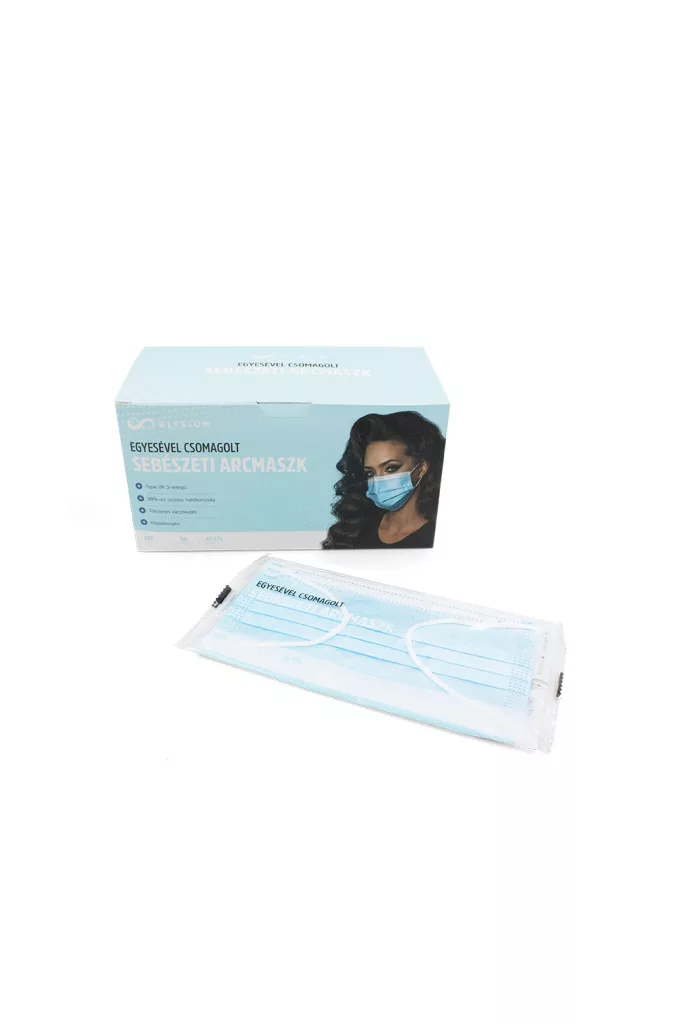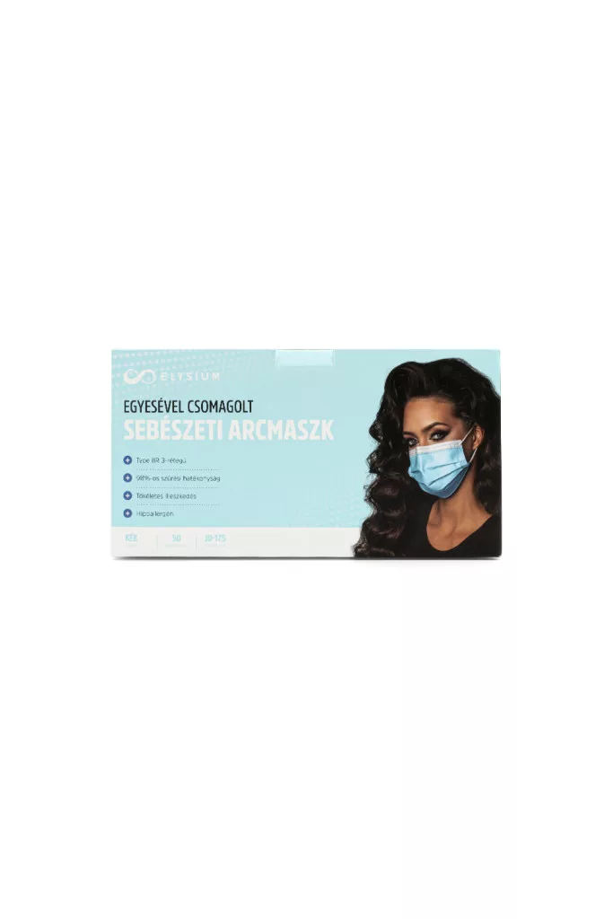 Az Elysium Type IIR 3-rétegű sebészeti arcmaszk 98%-os szűrési hatékonysággal nyújt védelmet a levegőben szálló és cseppfertőzéssel terjedő bakteriális fertőzések kockázatai ellen.