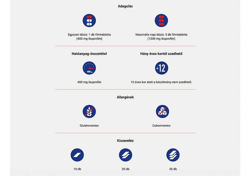 400 mg ibuprofént tartalmaz filmtablettánként.
