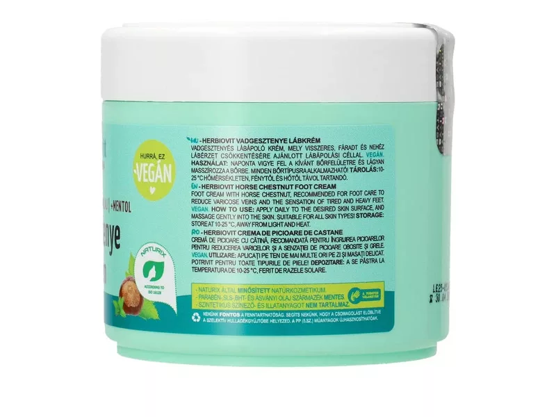 - A Herbiovit Vadgesztenye krém nem tartalmaz parabént, SLS-t, BHT-t és ásványi olaj alapú összetevőket.